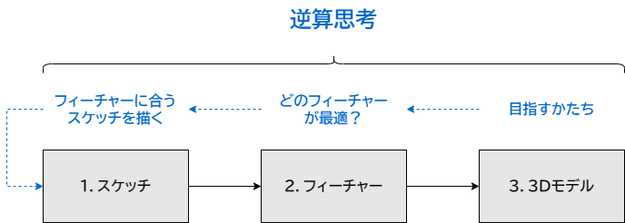 2Dスケッチ → フィーチャー → 3Dモデル
